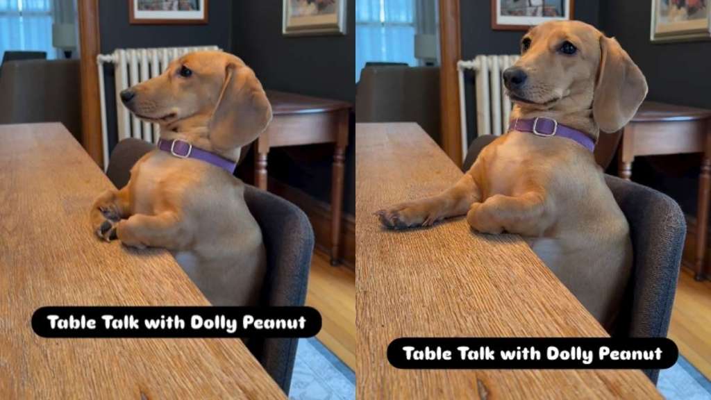 This dog’s posture is unlike anything you’ve ever seen. In the video, a Dachshund named Dolly Peanut is seen sitting on the dining table in an upright position, following every word her mom is saying.