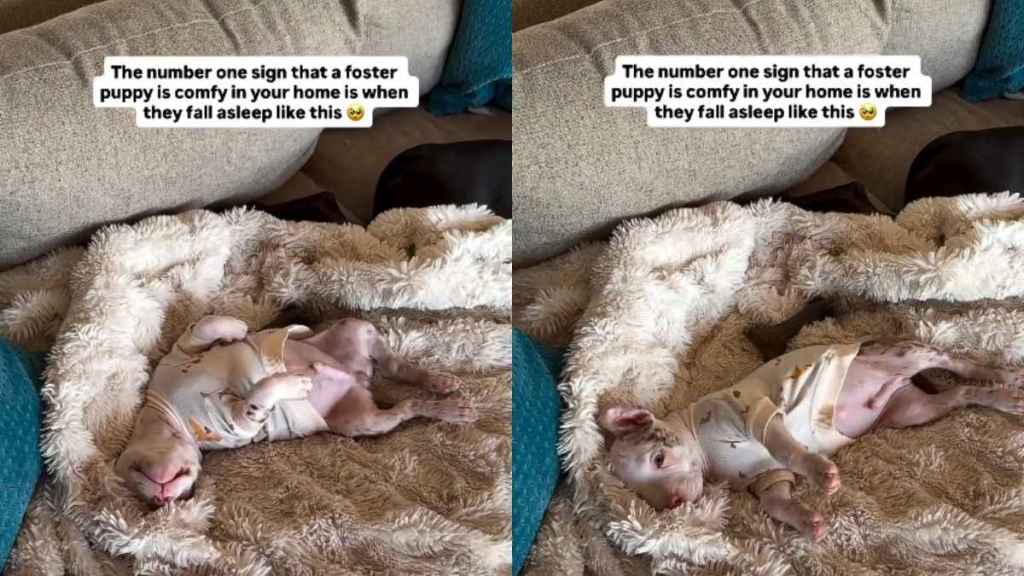 Foster pup sleeps like this in adorable video