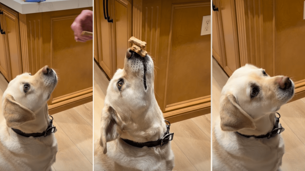 Some dogs sit, shake, or roll over. Jovie the therapy dog, however, performs a trick that requires patience, balance, and self-control. A delightful video shared by the Instagram account @joviethetherapydog shows the clever Labrador demonstrating what her owner calls the “Triple Stack,” a treat-balancing challenge that quickly impressed viewers online.