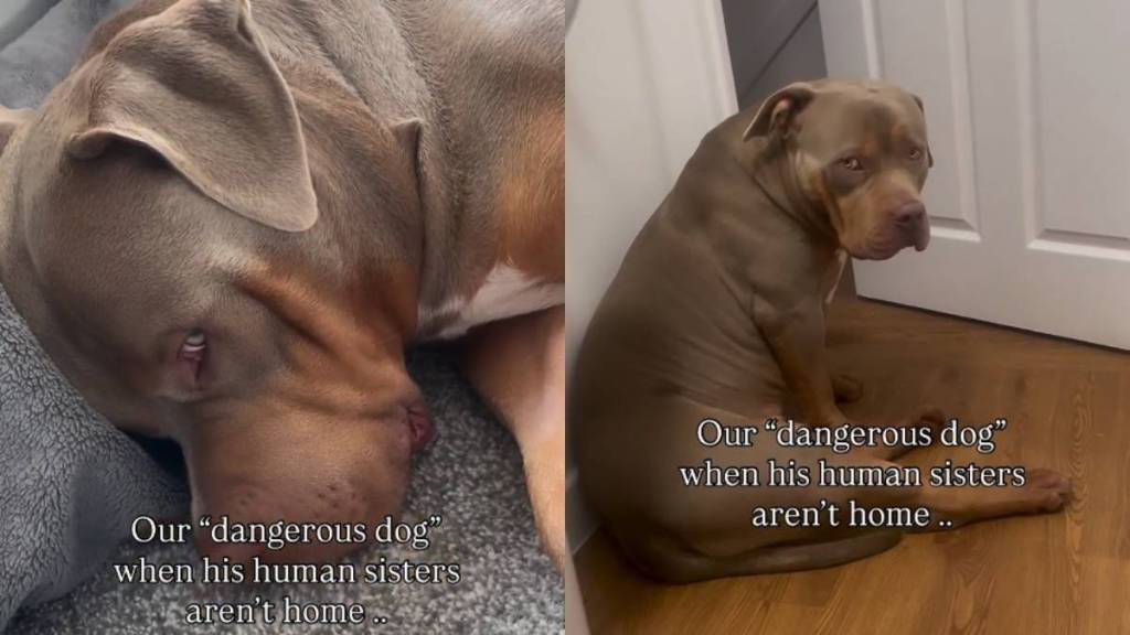 In an adorable dog video on Instagram, an owner records how their American XL Bully Meko doesn’t like it when his sisters are away. Through an on-screen text, the uploader highlights how their dog behaves “when his human sisters aren’t home.” Then, the clip shows the pet sitting with dropped shoulders and a sad expression.