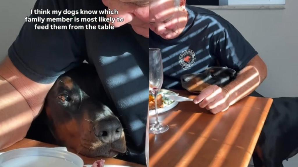 Video shows dogs know grandpa’s most likely to give them food from table