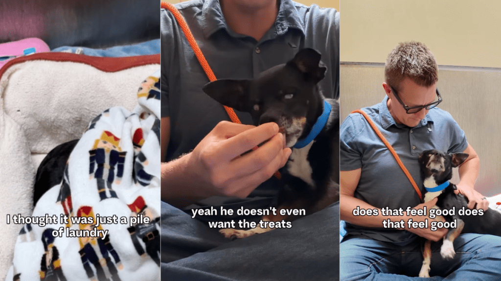 The video, shared on Instagram by dog rescuer Rocky Kanaka, begins with a moment that nearly didn’t happen. As Kanaka walks through a shelter documenting animals, he pauses at a kennel he admits he almost skipped. A blanket covers most of the space, and at first glance, it appears empty.